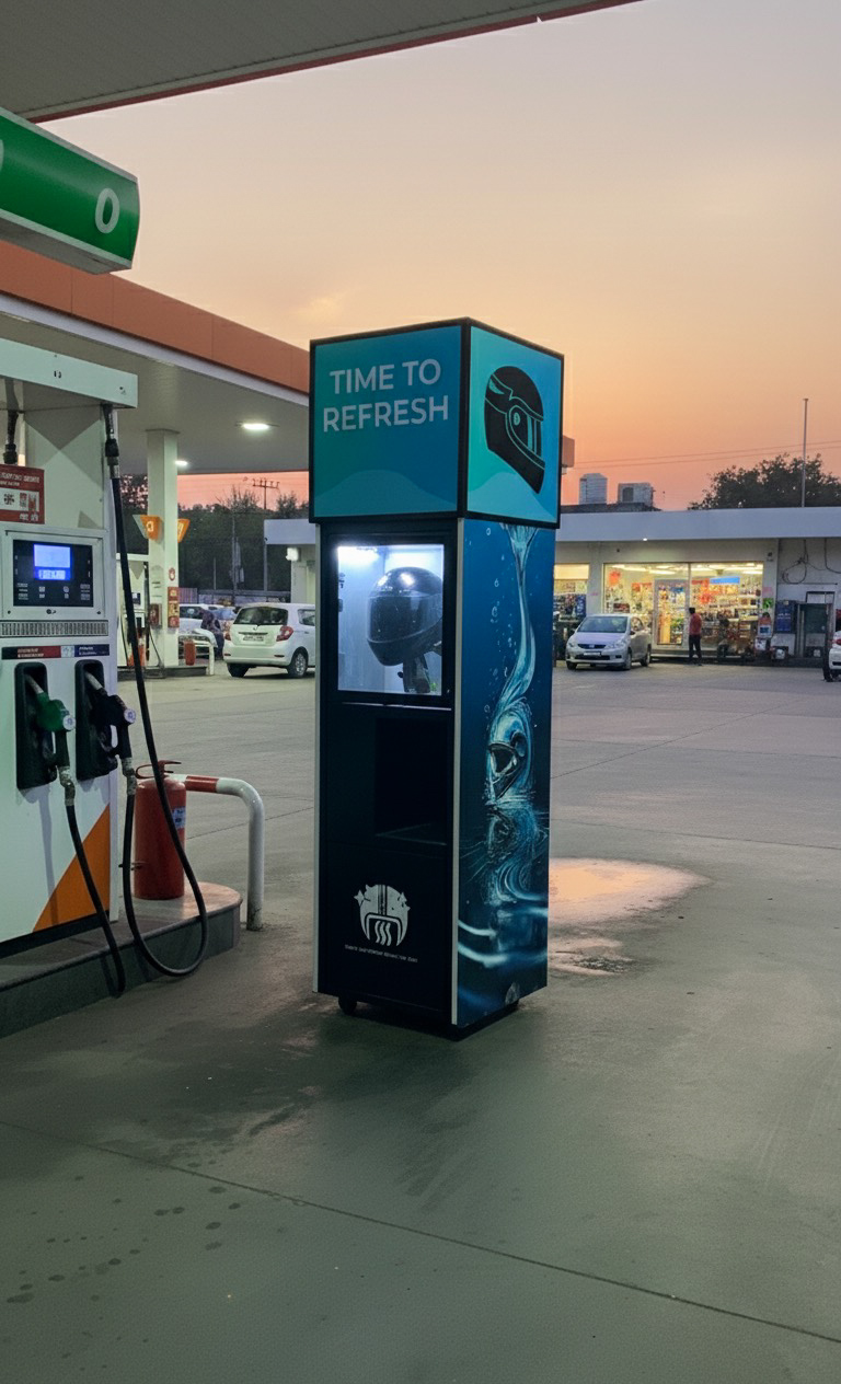 NeatHelme stations will be strategically located at petrol pumps, shopping malls, colleges, and hotels across major cities.